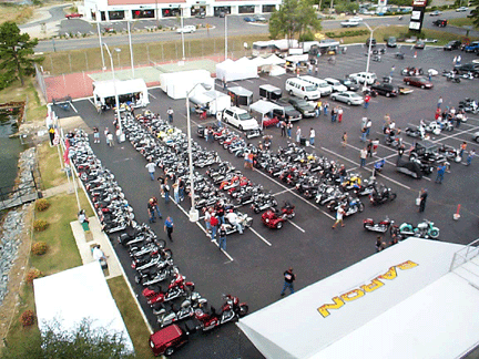 We had around 200 people officially registered and many others visited the lot and the vendors during the event. A large Southern Cruisers group stopped by Saturday and lots of individual bikers.