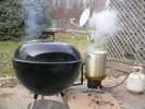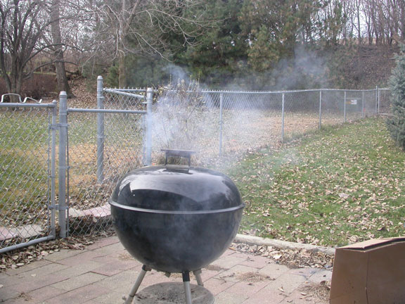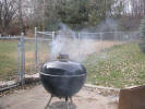 ![]() Thanksgiving morning with a 22 pound turkey on the Weber grill |