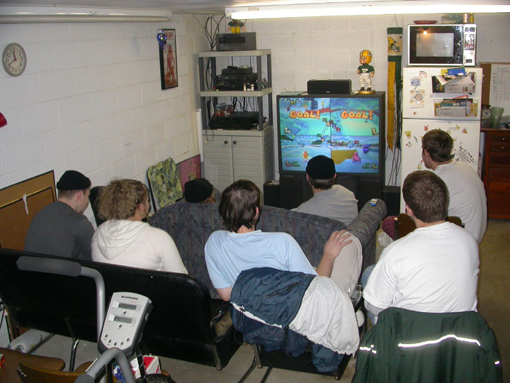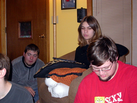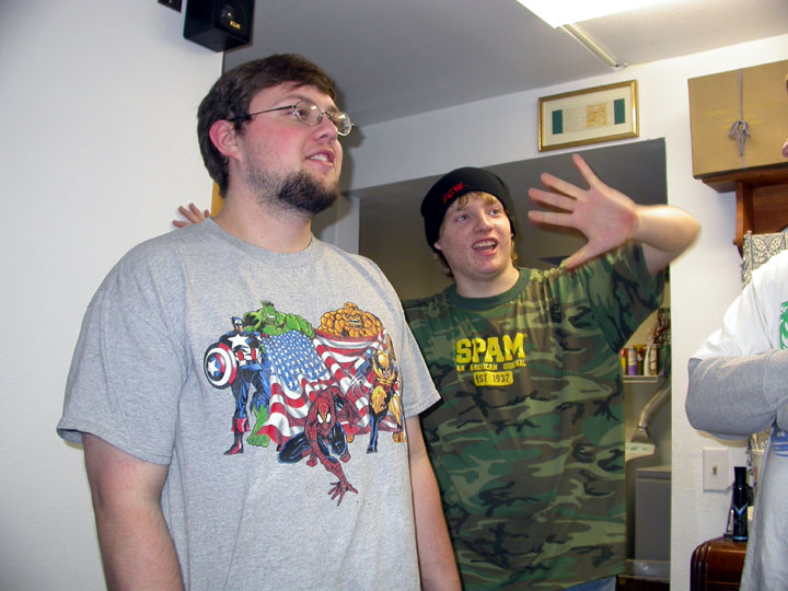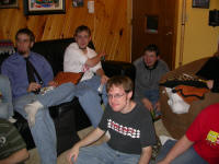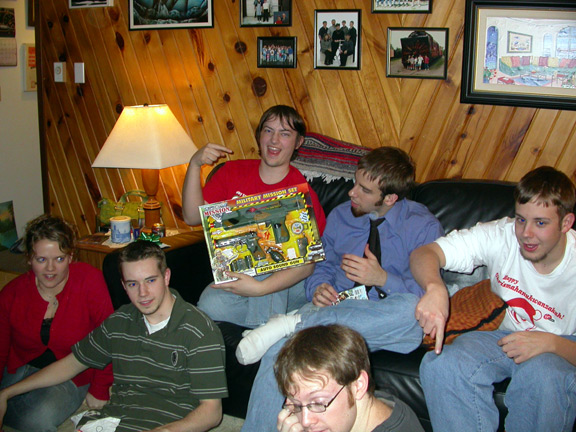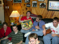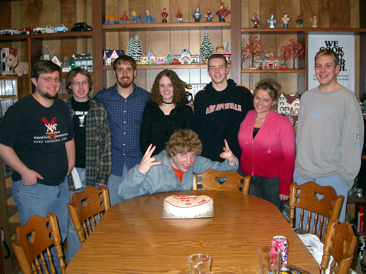 Ready for Smackdown, February 14, 2004; Jon, Kyle, Dan, Jenny, Eric (in front), Jake, Trista, Justin (Blue). |