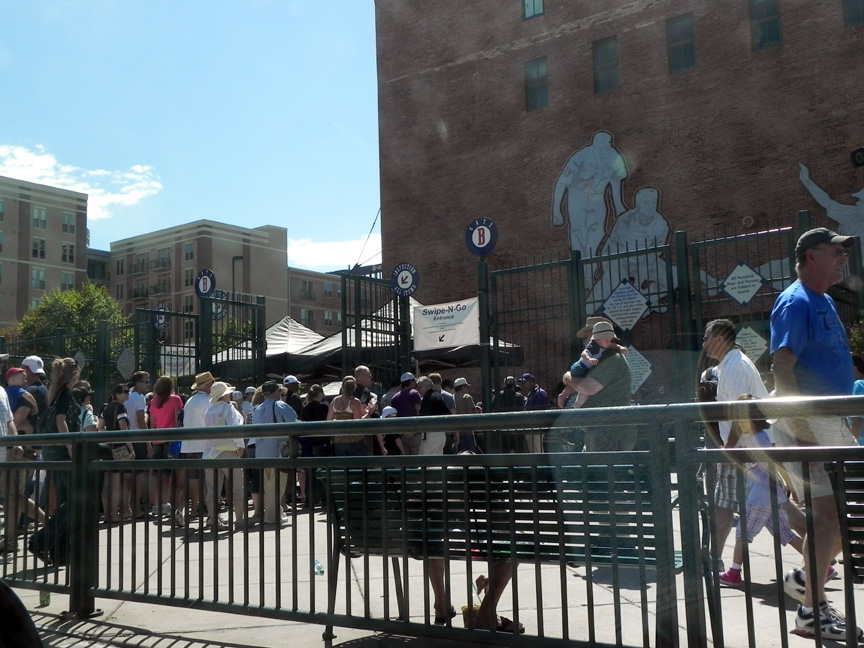 Folks waiting to get into a baseball